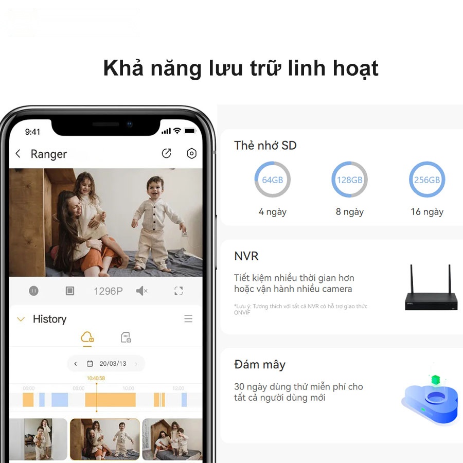 | Lưu trữ | Hỗ trợ khe cắm thẻ nhớ Micro SD, tối đa 256GB. Lưu trữ đám mây (tính phí) |