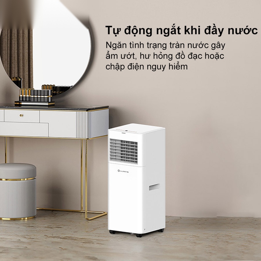 Trang bị công suất hút ẩm lên đến 760W cùng bình chứa nước dung tích 1 lít, điều hòa di động Lumias PAC-26 không chỉ làm mát hiệu quả mà còn giúp cân bằng độ ẩm trong không gian sống, hạn chế nấm mốc và mùi ẩm khó chịu. Đặc biệt, tính năng tự động ngắt khi bình nước đầy giúp ngăn tràn nước, đảm bảo an toàn khi sử dụng và tiết kiệm thời gian cho người dùng. Đây là giải pháp lý tưởng để giữ cho không gian luôn khô thoáng, sạch sẽ trong điều kiện thời tiết nồm ẩm hoặc mưa nhiều.