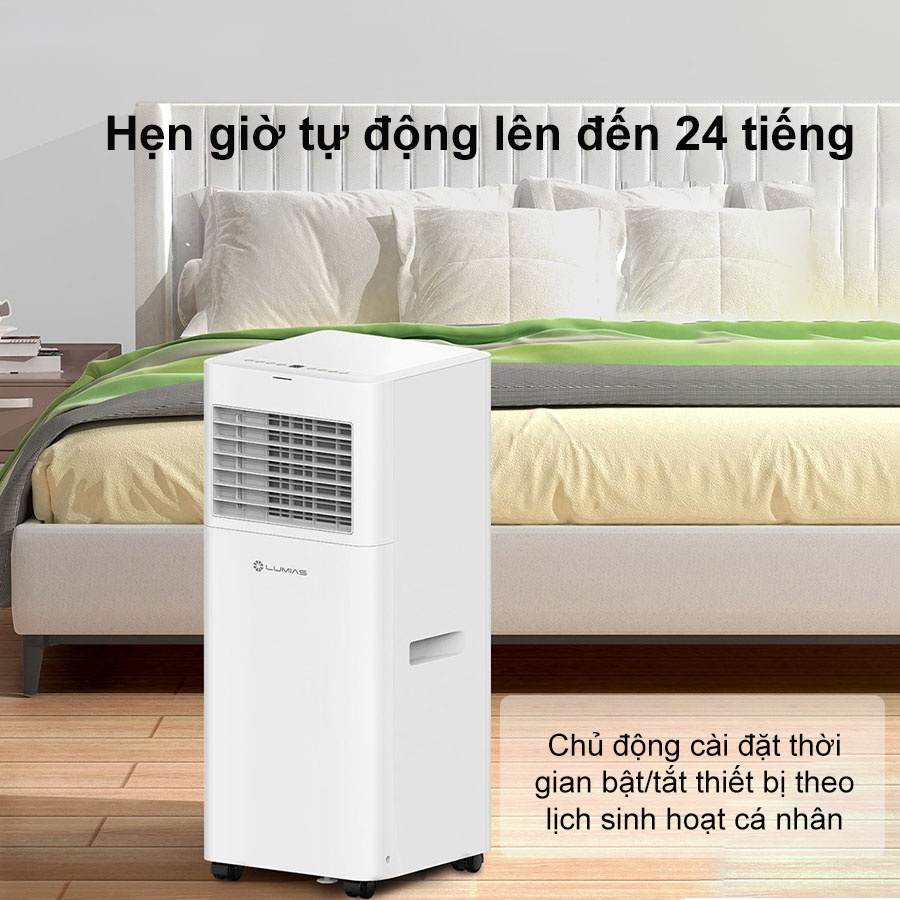 Điều hòa di động Lumias PAC-26 tích hợp tính năng hẹn giờ tự động lên đến 24 tiếng, cho phép người dùng chủ động cài đặt thời gian bật/tắt thiết bị theo lịch sinh hoạt cá nhân. Nhờ đó, bạn có thể tối ưu hiệu suất sử dụng, tiết kiệm điện năng hiệu quả và hạn chế tình trạng máy hoạt động không cần thiết. Dù sử dụng vào ban ngày hay ban đêm, tính năng này đảm bảo sự tiện lợi và an tâm tuyệt đối, đặc biệt phù hợp với người bận rộn hoặc thường xuyên quên tắt thiết bị sau khi sử dụng.