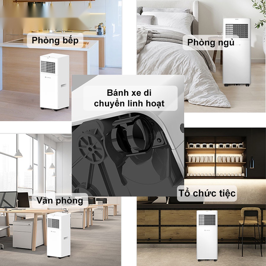 Sở hữu thiết kế tích hợp 4 bánh xe xoay linh hoạt, điều hòa di động Lumias PAC-26 cho phép người dùng dễ dàng di chuyển đến bất kỳ vị trí nào trong nhà mà không cần lắp đặt cố định. Từ phòng khách, phòng ngủ, nhà bếp đến văn phòng làm việc hay các buổi tiệc trong nhà, máy luôn đảm bảo khả năng làm mát hiệu quả và thích nghi tối đa với từng không gian khác nhau. Tính năng di động tiện lợi không chỉ mang đến sự linh hoạt trong sử dụng mà còn là giải pháp lý tưởng cho những ai cần một thiết bị làm mát đa năng, dễ sử dụng và cơ động.