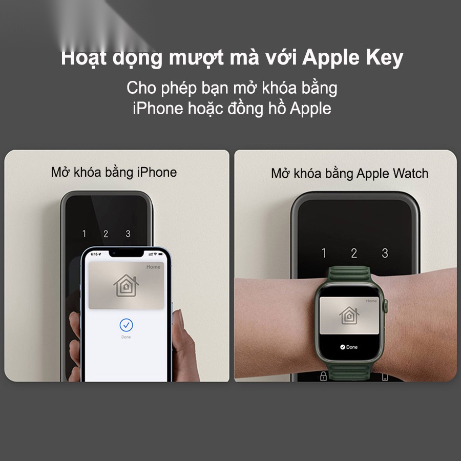 - Mở khóa bằng tính năng HomeKey: Với Apple HomeKit, bạn có thể sử dụng tính năng HomeKey độc quyền từ iOS 15 để mở khóa bằng cách đưa điện thoại iPhone hoặc Apple Watch gần khóa.