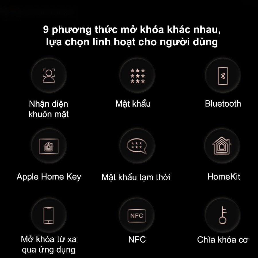 - Đa dạng phương thức mở khóa, lựa chọn linh hoạt cho người dùng