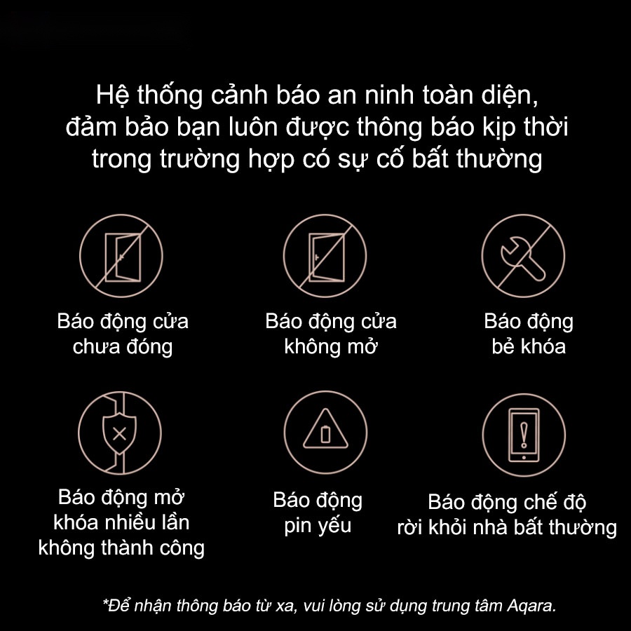 Aqara D200i FaceID được trang bị hệ thống cảnh báo an ninh toàn diện, đảm bảo bạn luôn được thông báo kịp thời trong trường hợp có sự cố bất thường. Hệ thống này bao gồm: