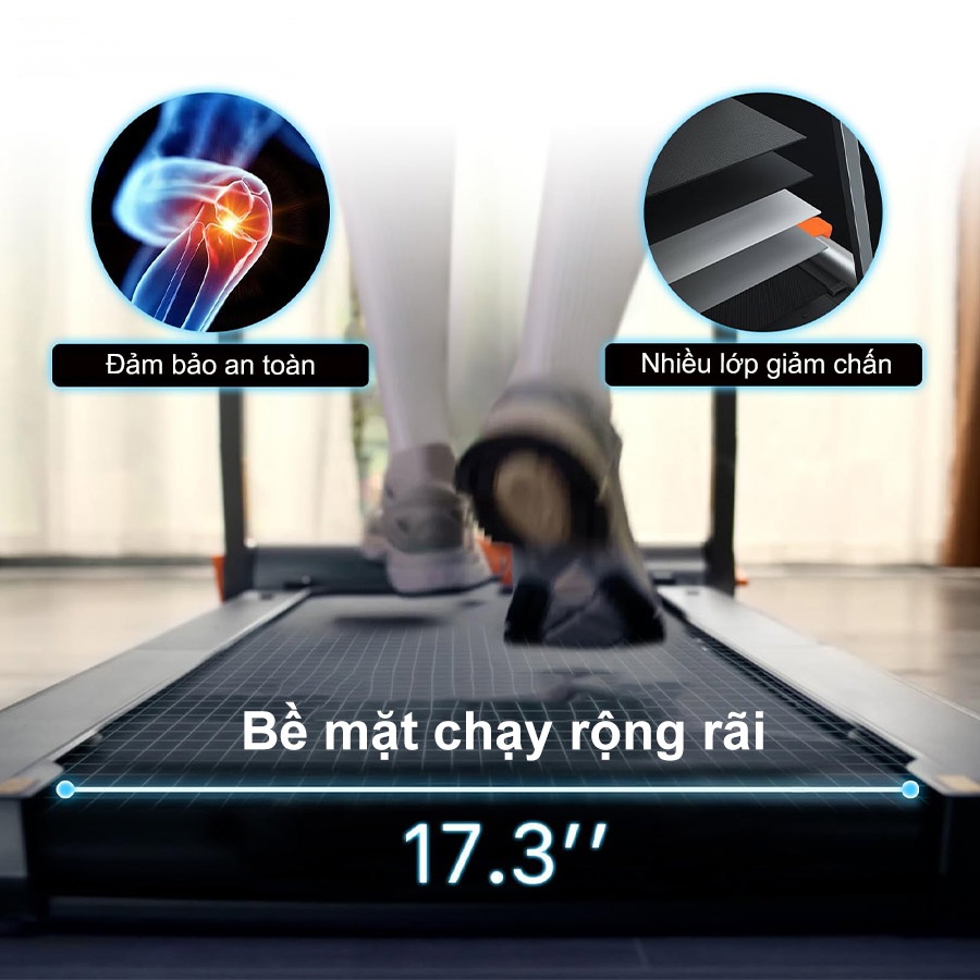 Nhờ sử dụng động cơ không chổi than tiên tiến, máy chạy bộ Kingsmith MC11 chỉ tạo ra 45dB khi hoạt động, thấp hơn khá nhiều so với các loại máy chạy bộ truyền thống. Kết hợp với thảm chạy êm ái 4 lớp càng giúp giảm tiếng ồn hiệu quả hơn nữa, bạn có thể chạy thoải mái mà không lo lắng về việc làm phiền những người xung quanh.