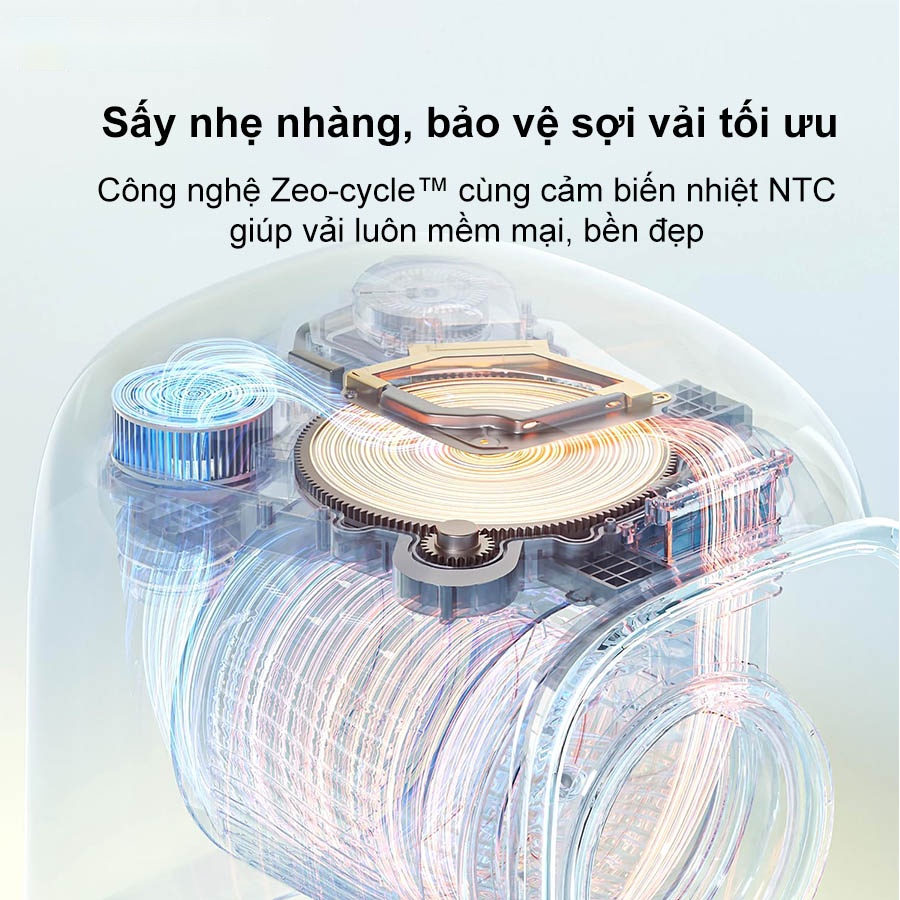 - Công nghệ sấy Zeo-cycle™ cùng cảm biến nhiệt thông minh giúp bảo vệ sợi vải