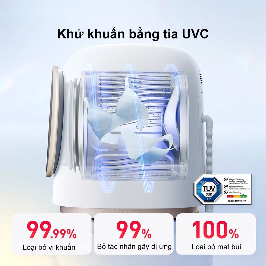| Khử khuẩn | Tia UVC và giặt nước nóng 90°C |