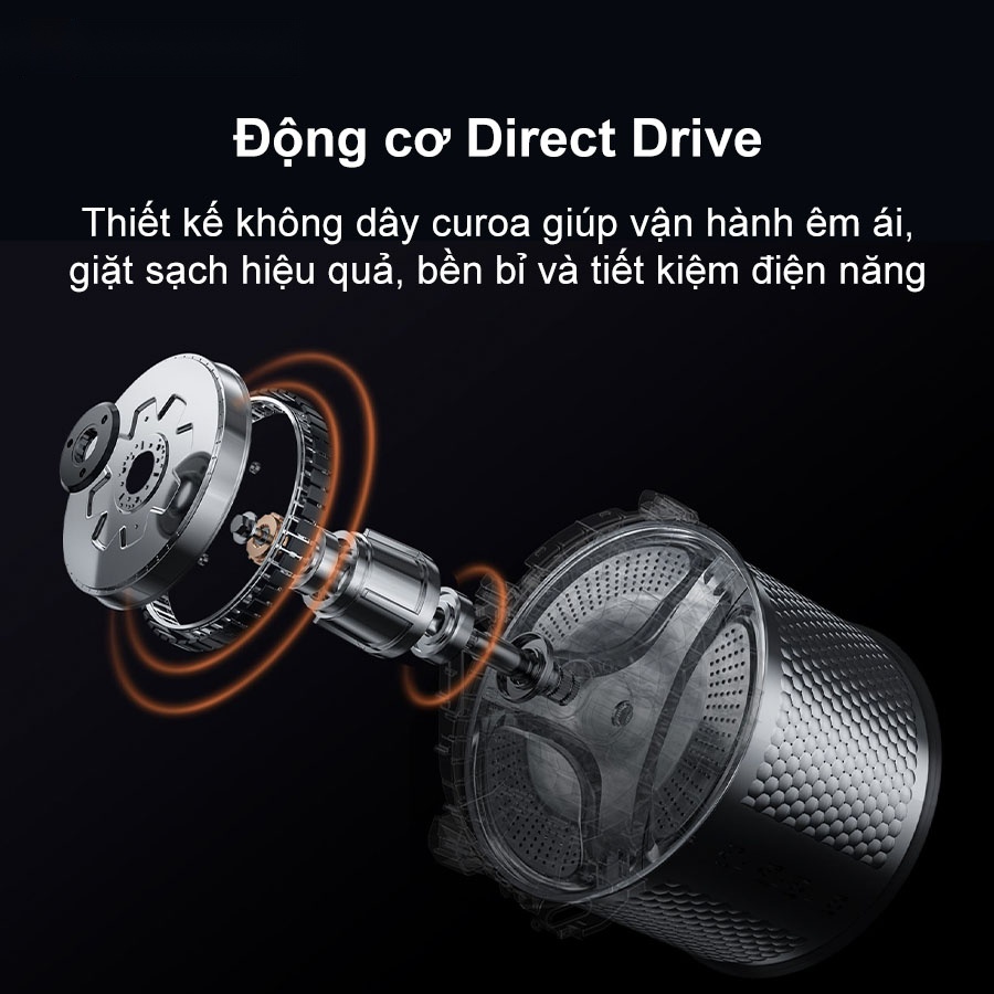 - Động cơ truyền động trực tiếp êm ái, bền bỉ, hiệu suất cao