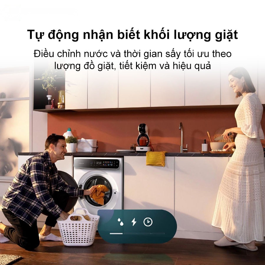 Bên cạnh đó, với chức năng Automatic Load Detection, máy giặt tự động nhận diện khối lượng quần áo để điều chỉnh lượng nước và thời gian sấy phù hợp, giúp tiết kiệm điện năng, thời gian và vẫn đảm bảo hiệu quả giặt sạch tối đa.