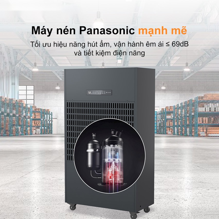 - Công suất hút ẩm lớn 480L/ngày