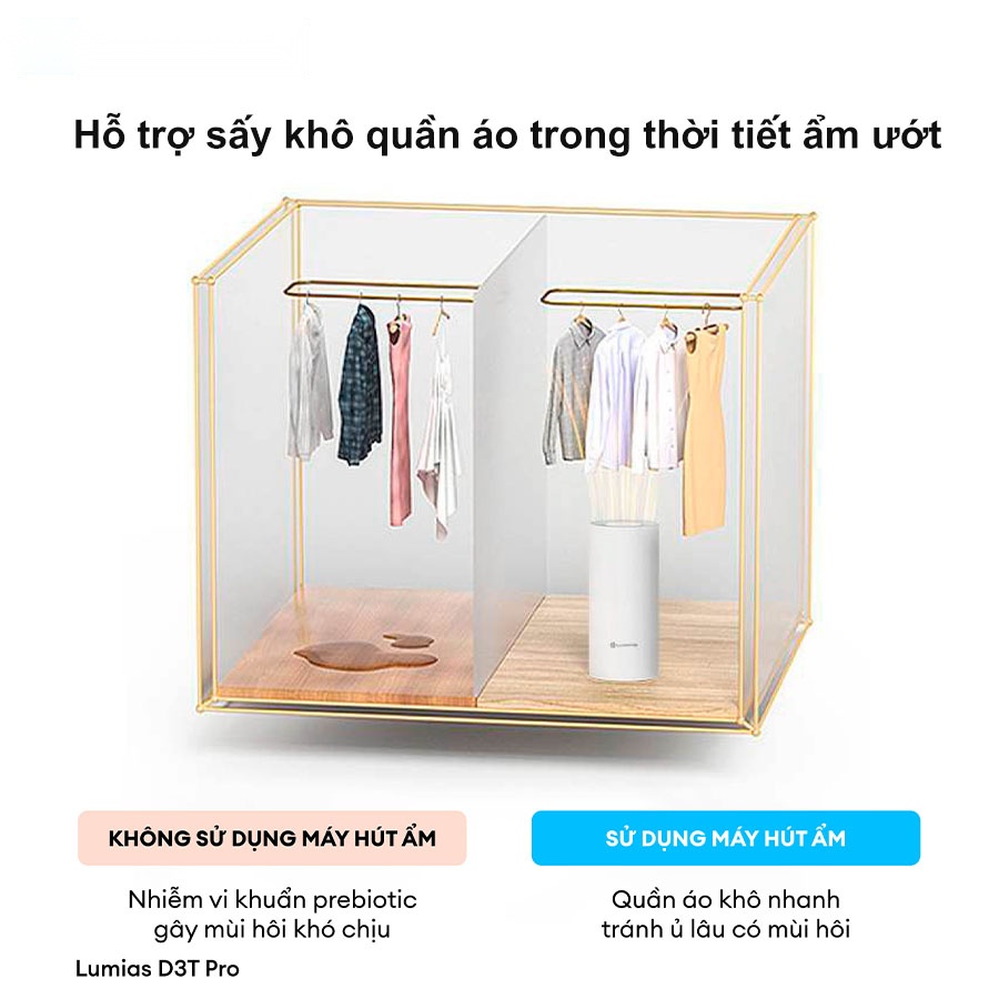 - Chế độ sấy quần áo: Không chỉ dừng lại ở việc khử ẩm, Lumias D3T pro còn hỗ trợ sấy khô quần áo một cách nhanh chóng và hiệu quả. Với chế độ sấy, bạn không còn phải lo lắng về việc quần áo bị ẩm mốc hay có mùi hôi khó chịu, mà vẫn giữ được độ bền đẹp của sợi vải.