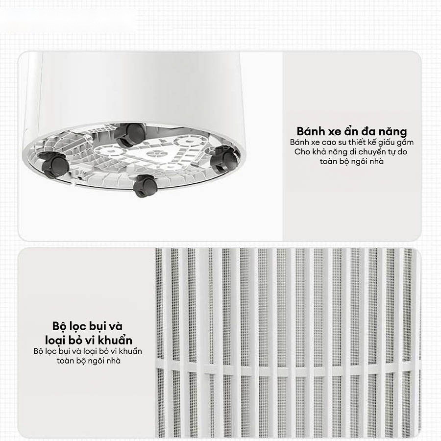 - Động cơ DC không chổi than hiệu suất cao, giảm ồn hiệu quả