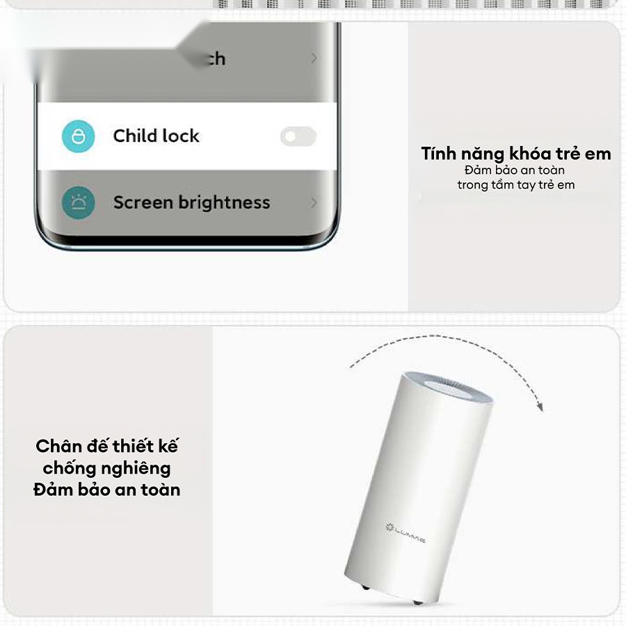 Máy hút ẩm Lumias D3T Pro được trang bị hàng loạt tính năng an toàn, giúp bảo vệ tối đa cho cả thiết bị và người sử dụng. Với chức năng khóa trẻ em, máy sẽ ngăn chặn mọi thao tác không mong muốn từ trẻ nhỏ. Ngoài ra, tính năng chống đổ và tự động tắt máy khi bị nghiêng đảm bảo an toàn tuyệt đối trong quá trình vận hành.