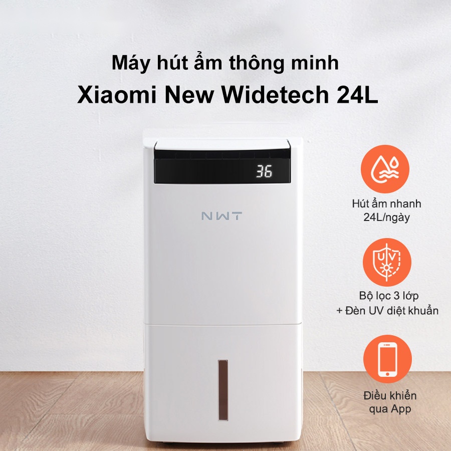 Máy hút ẩm không khí thông minh NEW WIDETECH 24L là thiết bị hút ẩm mới đến từ thương hiệu Xiaomi. Thời tiết ở Việt Nam thường có những ngày độ ẩm tăng cao dẫn đến nhiều phiền toái, từ quần áo ẩm mốc đến đường hô hấp và hư hỏng vật dụng.