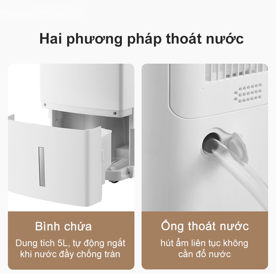 Hoặc là bạn có thể sử dụng ống thoát nước để hút ẩm liên tục mà không cần đổ nước thường xuyên. Điều này giúp giảm bớt công việc quản lý máy và đảm bảo tính tiện lợi trong việc sử dụng.