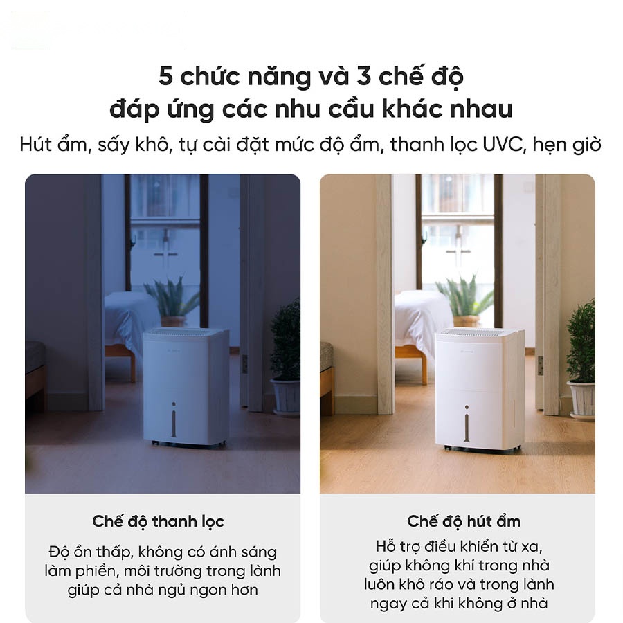 - Kiểm soát độ ẩm thông minh với 3 chế độ
