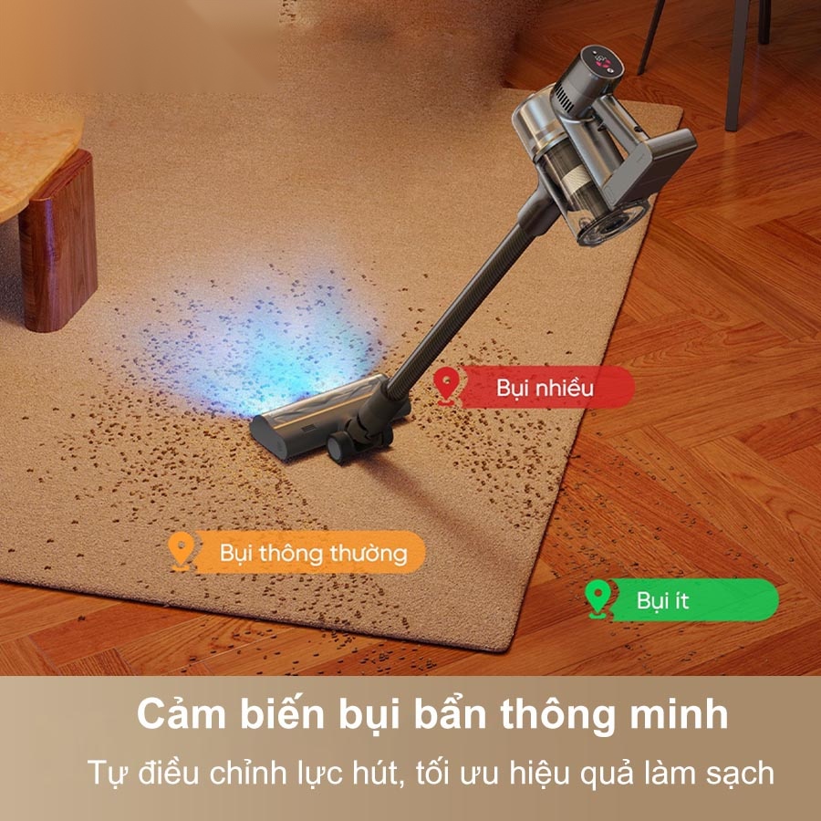 - Cảm biến bụi thông minh tự động nhận diện mức độ bẩn và điều chỉnh lực hút phù hợp.