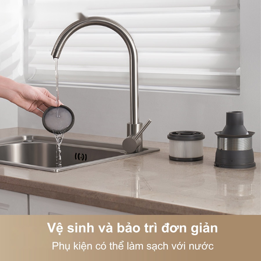 Vệ sinh đơn giản: Các phụ kiện như cốc đựng bụi và bộ lọc đều có thể làm sạch bằng nước, giúp kéo dài tuổi thọ và duy trì hiệu suất lọc.