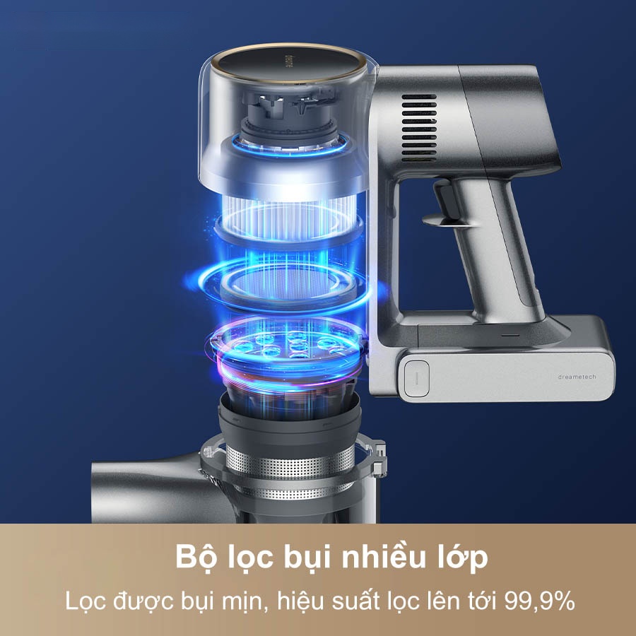 Sức khỏe hô hấp luôn là ưu tiên hàng đầu của người dùng, vì thế nên máy hút bụi cầm tay Dreame R20 trang bị bộ lọc bụi nhiều lớp với hiệu suất lọc vượt trội. Hệ thống này có khả năng lọc được 99,9% bụi mịn và các tác nhân gây dị ứng (như phấn hoa, mạt bụi) có kích thước siêu nhỏ, đảm bảo rằng không khí được trả lại sau quá trình hút bụi là sạch sẽ và trong lành, tạo môi trường sống an toàn hơn cho cả gia đình.