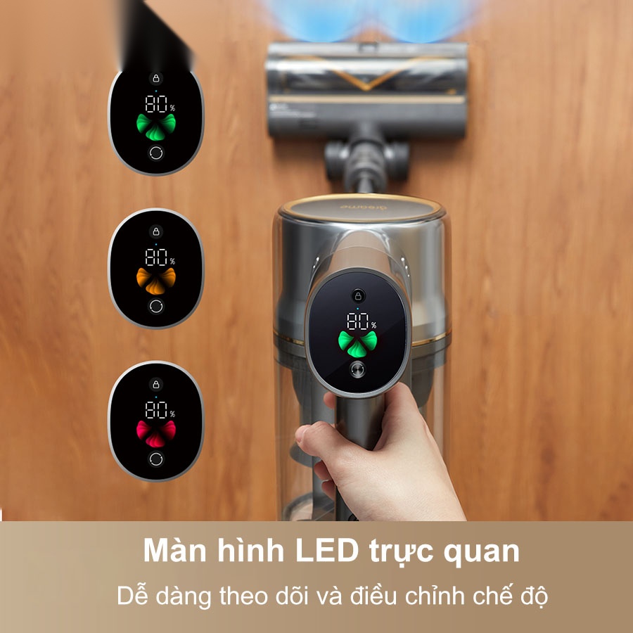 - Màn hình LED trực quan cho phép bạn dễ dàng theo dõi các thông số quan trọng như chế độ hút, tình trạng pin, và cảnh báo lỗi.