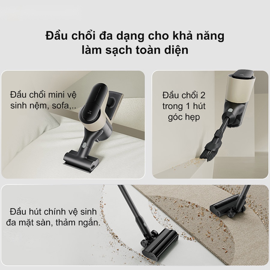 - Đầu chổi đa dạng cho khả năng làm sạch toàn diện