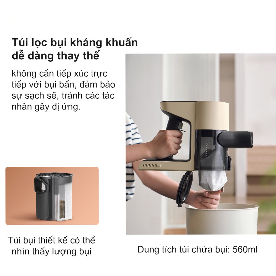 Không chỉ chú trọng đến việc lọc bụi, Roborock H5 còn được trang bị túi bụi kháng khuẩn độc lập. Túi bụi này có thể dễ dàng thay thế mà không cần tiếp xúc trực tiếp với bụi bẩn, đảm bảo rằng ngay cả những người có cơ địa dễ bị dị ứng cũng có thể sử dụng máy hút bụi một cách an toàn và thoải mái. Điều này không chỉ giúp giữ cho ngôi nhà của bạn sạch sẽ mà còn bảo vệ sức khỏe của bạn và gia đình khỏi các tác nhân gây dị ứng.