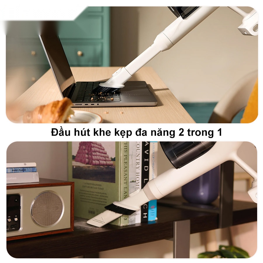 Đặc biệt, thân máy có thể luồn lách vào những không gian cao chỉ 5.6 cm, đảm bảo làm sạch kỹ lưỡng cả những khu vực hẹp mà trước đây thường bị bỏ sót. Sự kết hợp giữa thiết kế linh hoạt và khả năng vận hành êm ái mang lại trải nghiệm dọn dẹp thoải mái, nhẹ nhàng.