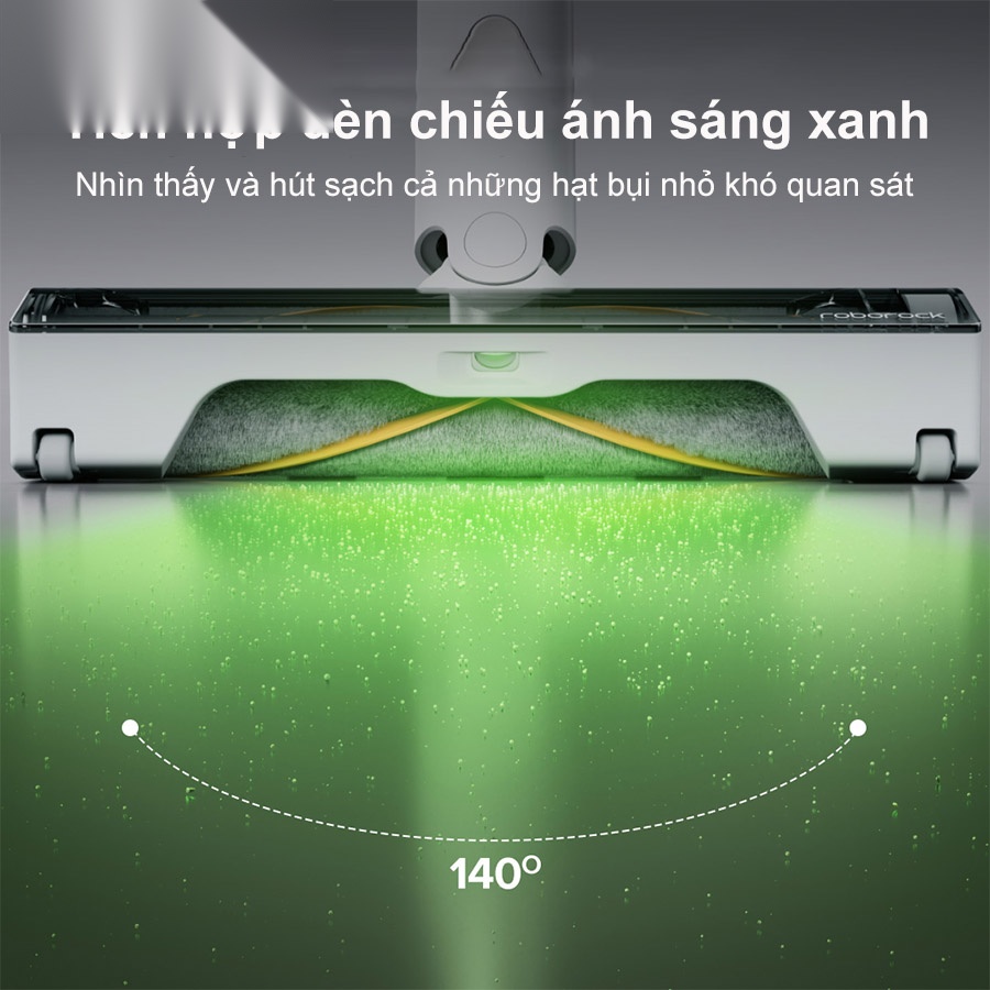 Máy hút bụi cầm tay Roborock H60 sở hữu hệ thống đèn LED chiếu sáng xanh với góc phủ rộng 140°, giúp làm lộ diện các hạt bụi mịn mà mắt thường khó nhận thấy. Nhờ đó, người dùng có thể dễ dàng quan sát và đảm bảo sàn nhà được làm sạch kỹ lưỡng hơn, không bỏ sót bất kỳ góc nhỏ nào.