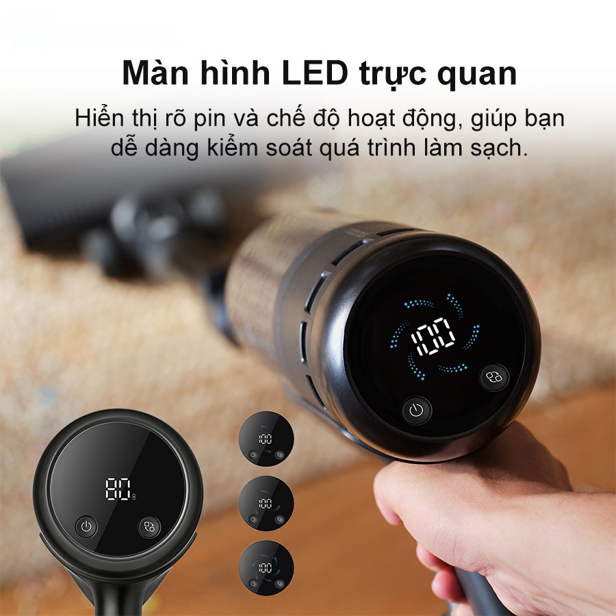 Màn hình LED được tích hợp trên máy hút bụi Roborock H60 Ultra hiển thị rõ ràng tình trạng pin và các chế độ làm sạch đang hoạt động. Chỉ cần nhìn các thông số trên màn hình, bạn có thể kiểm soát toàn bộ quá trình vận hành của thiết bị mà không cần các thao tác phức tạp.