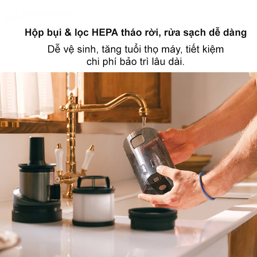 Hộp bụi và bộ lọc có thể tháo rời và rửa sạch bằng nước
