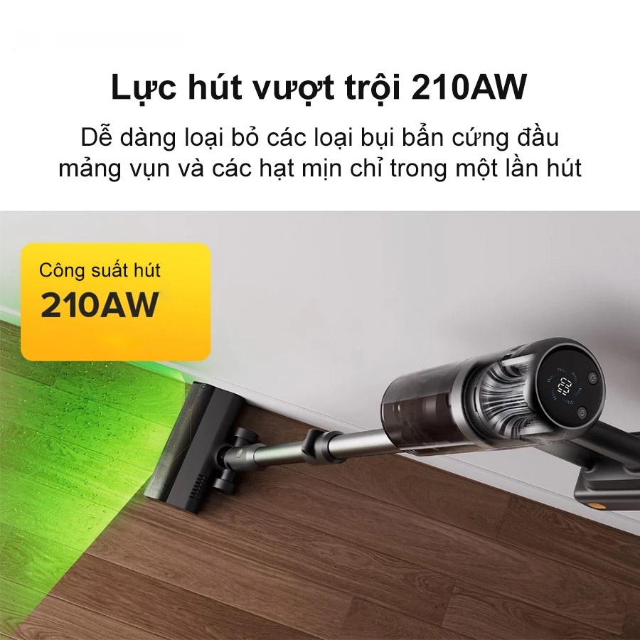 - Lực hút mạnh mẽ 210AW, làm sạch chuyên sâu không bỏ sót