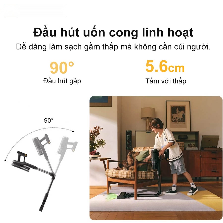 Đầu hút linh hoạt, dễ dàng tiếp cận các vị trí thấp