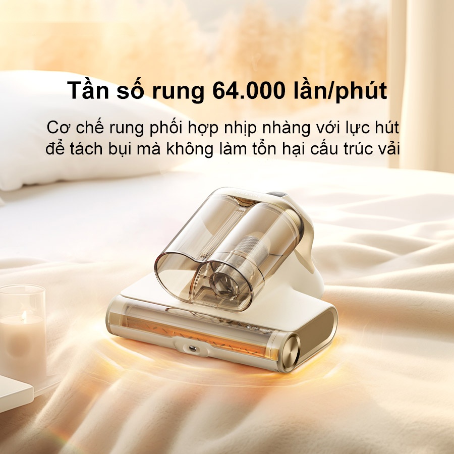 Tần số rung 64.000 lần/phút giúp máy hút bụi giường nệm Dreame D20 Pro lắc bật bụi, mạt và hạt bám chặt trên bề mặt đệm trước khi hút. Cơ chế rung phối hợp nhịp nhàng với lực hút để tách bụi mà không làm tổn hại cấu trúc vải. Nhờ vậy, việc làm sạch sâu trở nên hiệu quả mà vẫn giữ nguyên độ bền của nệm và chăn ga. Tần số rung cao cũng rút ngắn thời gian thao tác, tiết kiệm công sức cho người dùng.