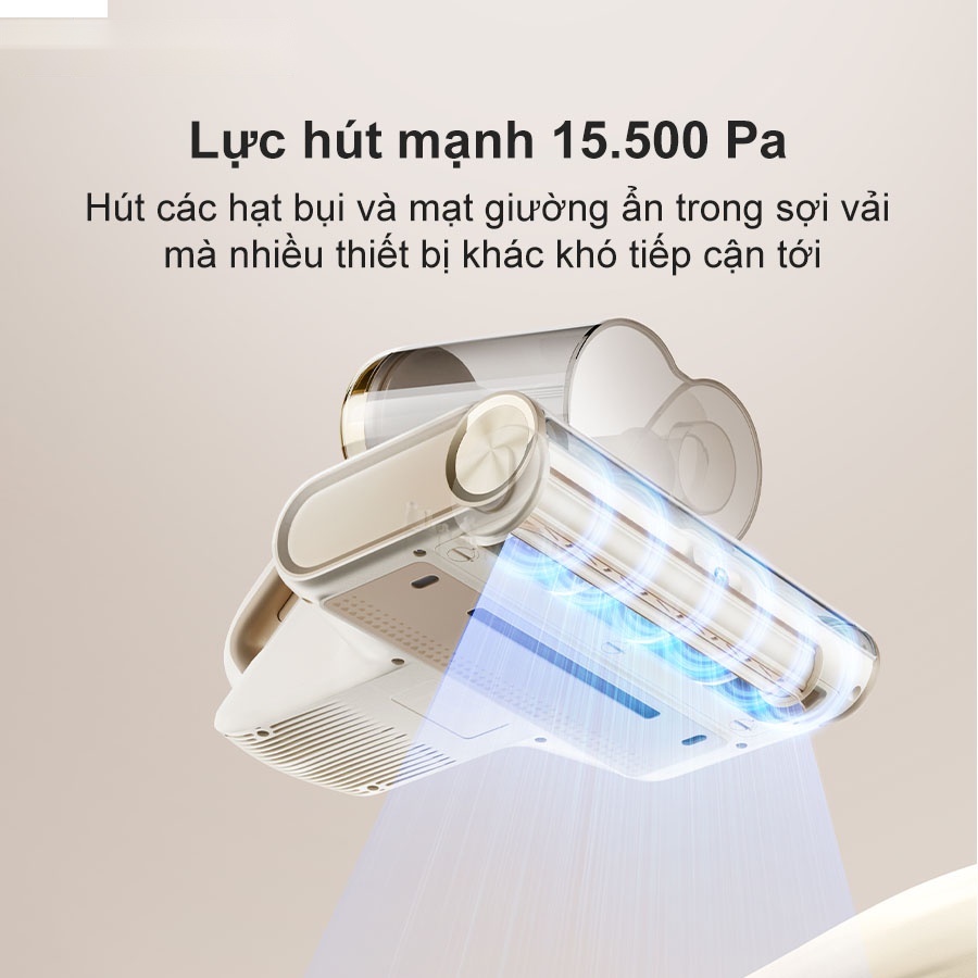 Lực hút tối ưu 15.500 Pa đảm bảo loại bỏ triệt để bụi mịn, mạt giường