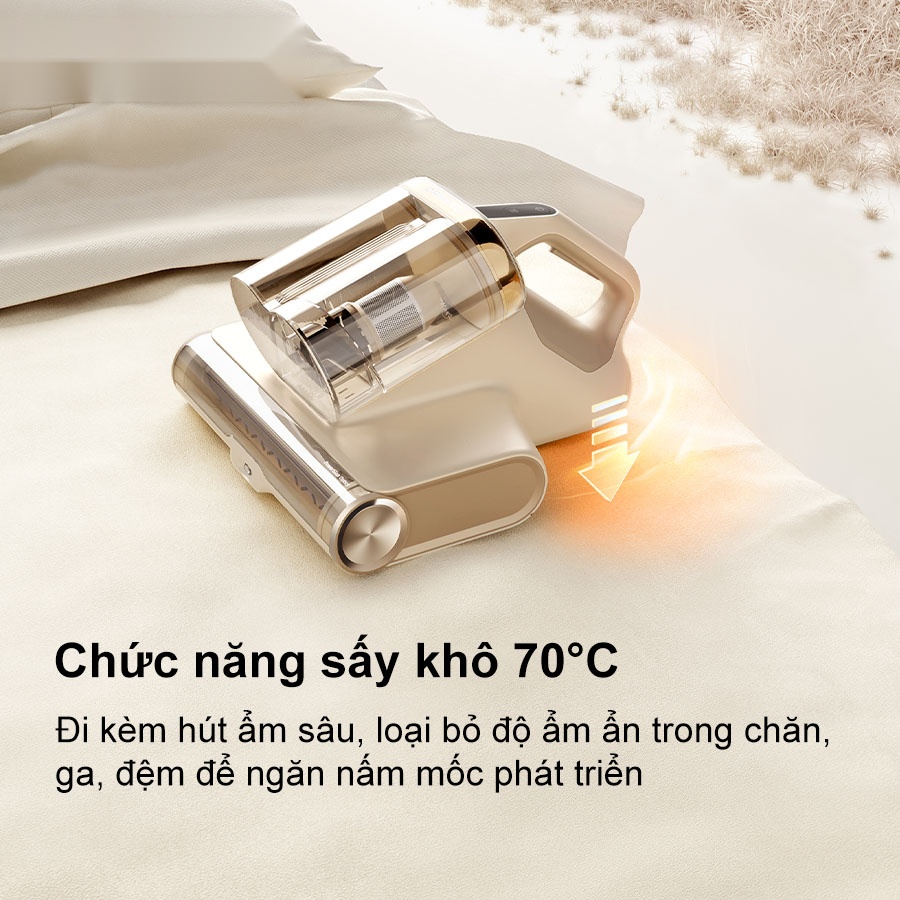 Chức năng sưởi 55°C của máy hút bụi giường nệm Dreame D20 Pro nhanh chóng nâng nhiệt bề mặt để tiêu diệt bọ rệp và vi khuẩn nằm sâu trong sợi vải. Chế độ sấy 70°C đi kèm hút ẩm sâu, loại bỏ độ ẩm ẩn trong chăn, ga, đệm để ngăn nấm mốc phát triển. Hệ thống cảm biến tự động bảo vệ linh kiện khi hoạt động liên tục, đảm bảo an toàn và bền bỉ. Sự kết hợp giữa gia nhiệt và sấy mang lại bề mặt ngủ khô ráo, khử mùi và an toàn hơn.