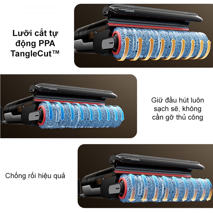 Trang bị lưỡi cắt nhập khẩu Thụy Sĩ, Dreame H13 FlexReach “xử gọn” tóc và lông thú cuốn vào con lăn, giữ đầu hút luôn sạch sẽ, không cần gỡ thủ công. Kết hợp thiết kế chổi linh hoạt và cơ chế cạo thông minh, máy duy trì lực hút mạnh mẽ ngay cả trên sàn nhiều tóc rụng, đồng thời giảm tắc nghẽn và kéo dài tuổi thọ động cơ.
