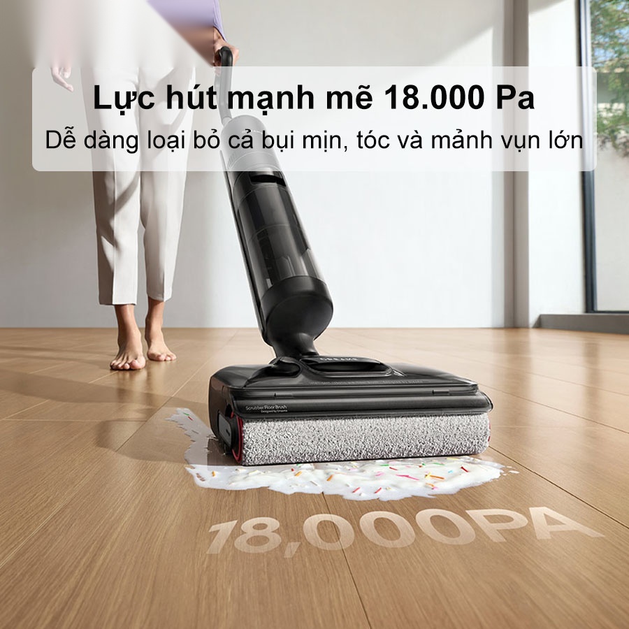 Lực hút mạnh 18.000 Pa xử lý mọi vết bẩn