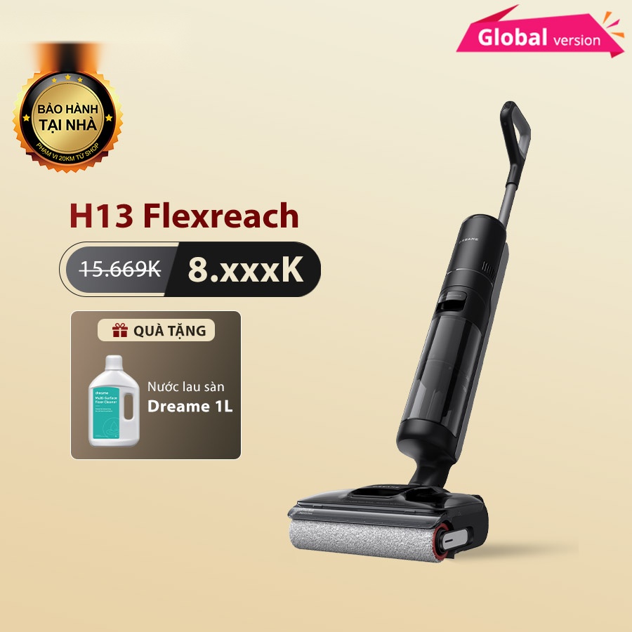 Máy hút bụi lau nhà Dreame H13 FlexReach là thiết bị vệ sinh gia dụng thế hệ mới, kết hợp lực hút mạnh mẽ, thời lượng pin bền bỉ và thiết kế linh hoạt giúp làm sạch mọi khu vực trong nhà. Sản phẩm không chỉ xử lý bụi mịn, tóc rối và các vết bẩn cứng đầu, mà còn trang bị hộc chứa nước bẩn kháng khuẩn, khử mùi hiệu quả, mang lại không gian sống trong lành, an toàn cho cả gia đình.