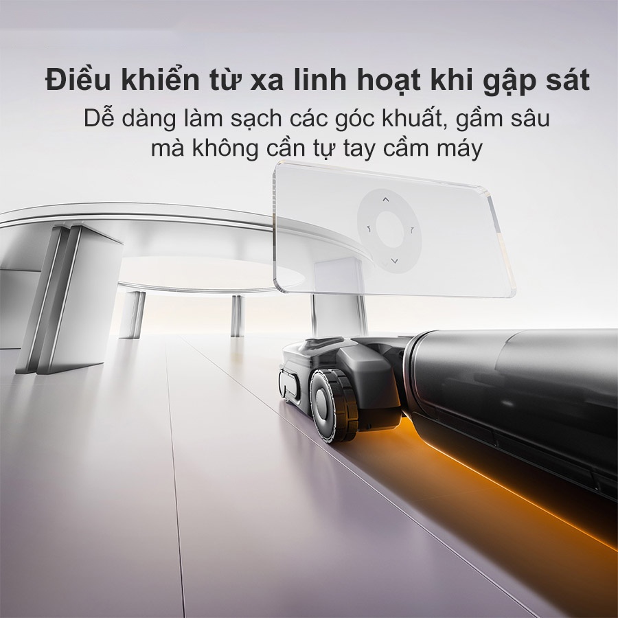 Với công nghệ FlatReach® 2.0, Roborock F25 ACE Pro có thể nằm phẳng chỉ 12.5cm để luồn sâu dưới giường, ghế sofa hoặc tủ thấp mà không giảm lực hút hay bỏ sót bụi bẩn. Nhờ App điều khiển từ xa thông minh, người dùng có thể dễ dàng cho máy chui sâu vào các vị trí khó với chỉ một thao tác chạm, biến việc lau dọn toàn bộ căn nhà thành trải nghiệm nhẹ nhàng và tiện lợi.