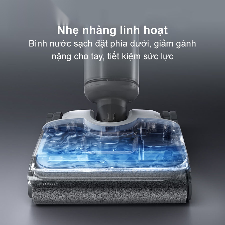 Thiết kế vị trí bình nước sạch được đặt thấp hơn giúp tăng áp lực lên con lăn, từ đó ép sát đầu lau vào sàn nhà. Nhờ đó, những vết bẩn khó nhằn được làm bong và cuốn sạch một cách dễ dàng. Đây là giải pháp lý tưởng để duy trì sàn nhà luôn sạch sẽ mà không cần tốn thời gian hay nỗ lực quá nhiều.