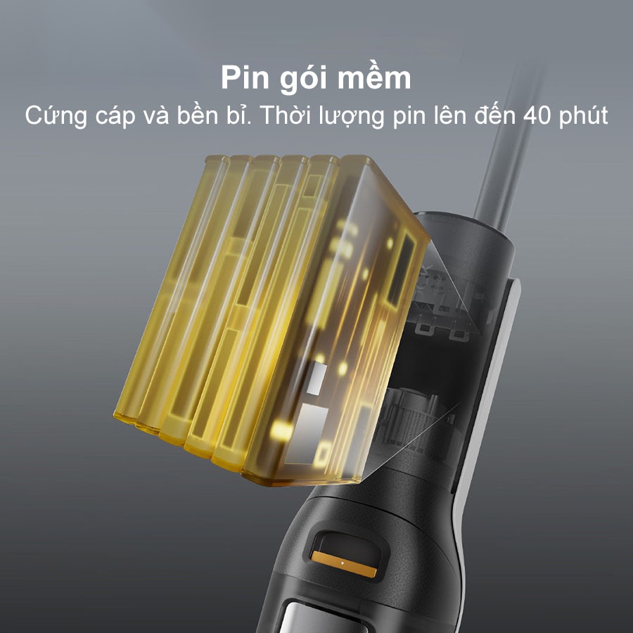 Máy hút bụi lau nhà cầm tay Roborock F25 có thời lượng hoạt động liên tục lên đến 40 phút, đủ để làm sạch toàn bộ không gian rộng lớn chỉ trong một lần sử dụng. Đi kèm với đó là lớp vỏ silicon chống thấm nước và hệ thống kiểm soát nhiệt thông minh, giúp bảo vệ pin khỏi các tác động bên ngoài và nâng cao tuổi thọ sản phẩm. Đây là một thiết bị không chỉ mạnh mẽ mà còn bền bỉ, mang đến giá trị lâu dài cho người dùng.
