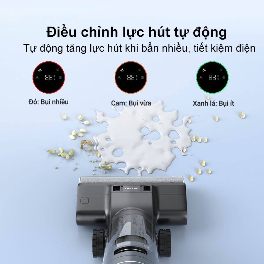 Khả năng điều chỉnh lực hút tự động của Dreame H13 Pro cũng là một điểm nổi bật, cho phép sản phẩm tự động chọn chế độ phù hợp tùy thuộc vào loại vết bẩn. Giúp bạn dễ dàng làm sạch mọi góc khuất của ngôi nhà một cách nhanh chóng và hiệu quả.