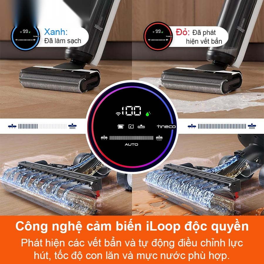 Với công nghệ cảm biến iLoop độc quyền của hãng, Tineco Floor One S6 có thể phát hiện bụi bẩn khô và ướt một cách chính xác, từ các mảnh rác vụn tới các vết bẩn khác bám trên sàn nhà để làm sạch một cách nhanh chóng.