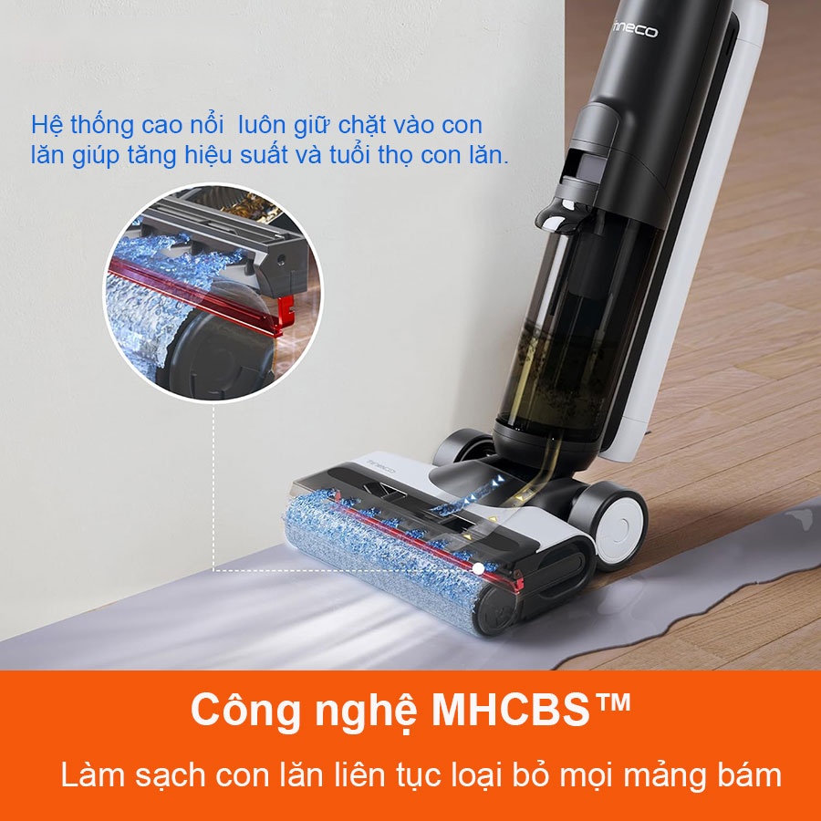 Công nghệ TINECO MHCBS™ được trang bị trên Tineco Floor One S6 giúp máy có khả năng làm sạch vượt trội. Khi hoạt động, Tineco Floor One S6 sẽ phun đều nước sạch trên trục lăn bàn chải, đảm bảo rằng mọi diện tích sàn nhà được lau sạch và sáng bóng. Với tốc độ không đổi 450 vòng/phút của con lăn bàn chải, mọi vết bẩn và mảnh vụn sẽ được loại bỏ hoàn toàn.