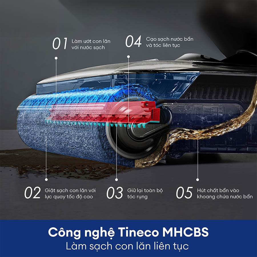 Máy hút bụi lau nhà Tineco Floor One S9 Artist Prime được trang bị công nghệ độc quyền MHCBS, cho phép nước sạch liên tục chảy qua con lăn trong suốt quá trình vận hành. Đồng thời, nước bẩn được hút bỏ ngay lập tức, đảm bảo bề mặt sàn luôn tiếp xúc với nguồn nước sạch, không gặp phải tình trạng “lau ngược bẩn” như các dòng máy thông thường. Nhờ cơ chế này, sàn nhà được làm sạch triệt để và vệ sinh hơn, đặc biệt phù hợp cho gia đình có trẻ nhỏ hoặc nuôi thú cưng.