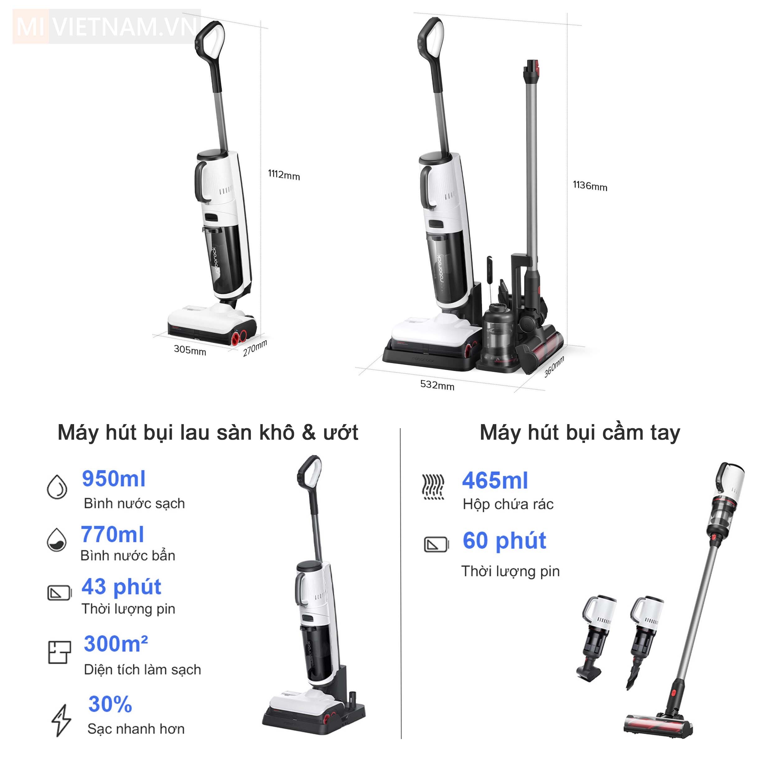 | Kích thước máy hút bụi khô và ướt | 305x270x1112mm |