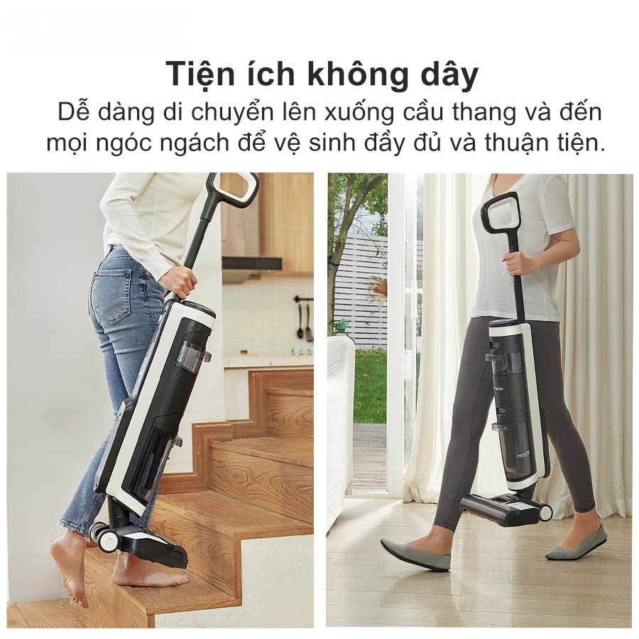 Thân máy nhẹ giúp giảm gánh nặng khi sử dụng, và cơ chế hoạt động không dây cho phép bạn dễ dàng di chuyển từ phòng này sang phòng khác hoặc lên xuống cầu thang mà không gặp khó khăn. Sự linh hoạt của máy không chỉ giúp di chuyển một cách thuận tiện, mà còn giảm mệt mỏi sau thời gian sử dụng lâu dài.