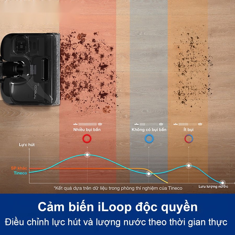 Cảm biến iLoop thông minh liên tục theo dõi mức độ bụi bẩn trên bề mặt sàn và điều chỉnh lực hút cũng như lượng nước cần thiết cho phù hợp. Điều này giúp máy hút bụi lau sàn khô ướt Tineco FLOOR ONE S6 Stretch Extreme tiết kiệm pin, giảm lãng phí nước và tối ưu hóa hiệu quả dọn dẹp cho từng khu vực khác nhau. Đặc biệt, iLoop giúp duy trì hiệu suất hút ổn định mà không cần can thiệp thủ công.