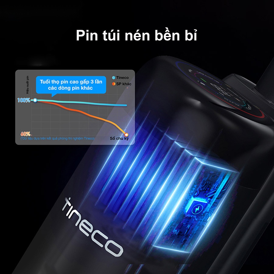 Máy hút bụi lau sàn khô ướt Tineco FLOOR ONE S6 Stretch Extreme được trang bị viên pin túi nén 6x4000mAh, một cải tiến giúp tăng mật độ năng lượng mà vẫn giữ trọng lượng nhẹ. Nhờ đó, Tineco S6 Stretch Extreme có thể hoạt động liên tục đến 40 phút chỉ sau một lần sạc. Dung lượng pin này phù hợp với dung tích bình nước sạch 0.8L và nước bẩn 0.72L, đảm bảo khả năng làm sạch toàn bộ căn hộ hoặc sàn lớn mà không bị ngắt quãng.