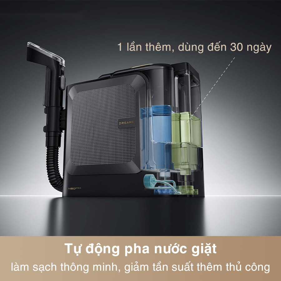 Máy làm sạch thảm di động Dreame N20 Steam là giải pháp làm sạch thảm và vải mềm toàn diện cho gia đình hiện đại. Với hơi nước 100°C, nước nóng 70°C cùng lực hút mạnh 17kPa, máy dễ dàng đánh bay vết bẩn cứng đầu và loại bỏ vi khuẩn ẩn sâu trong sợi vải. Thiết kế nhẹ gọn, dễ sử dụng, đi kèm phụ kiện đa năng và dây nối mở rộng, giúp vệ sinh hiệu quả từ sofa, rèm, nội thất ô tô đến các khe góc nhỏ. Tính năng tự pha dung dịch và tự làm sạch một chạm giúp tiết kiệm thời gian, giữ máy luôn sạch và sẵn sàng cho mọi nhu cầu làm sạch trong nhà.
