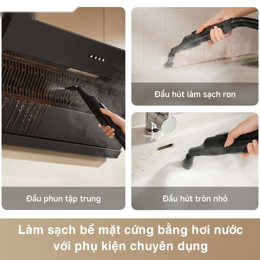 - Hơi nước nóng 100°C giúp làm sạch sâu và diệt khuẩn vượt trội
